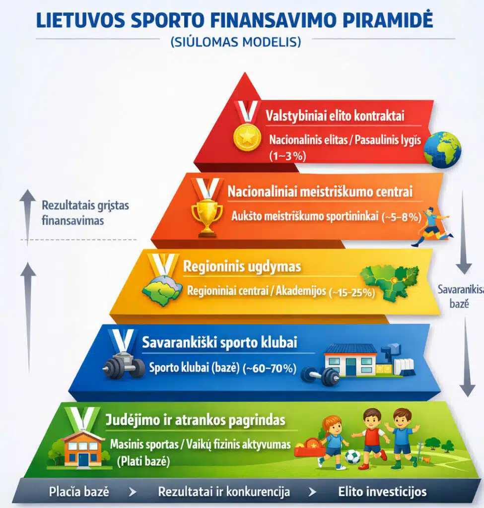 Šio projekto tikslas – sukurti tvarią, skaidrią ir rezultatais grįstą Lietuvos sporto finansavimo