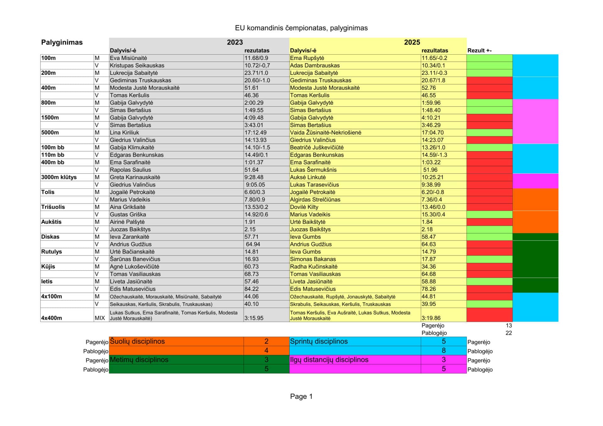 Lietuvos rinktinės komandiniuose čempionatuose palyginimas